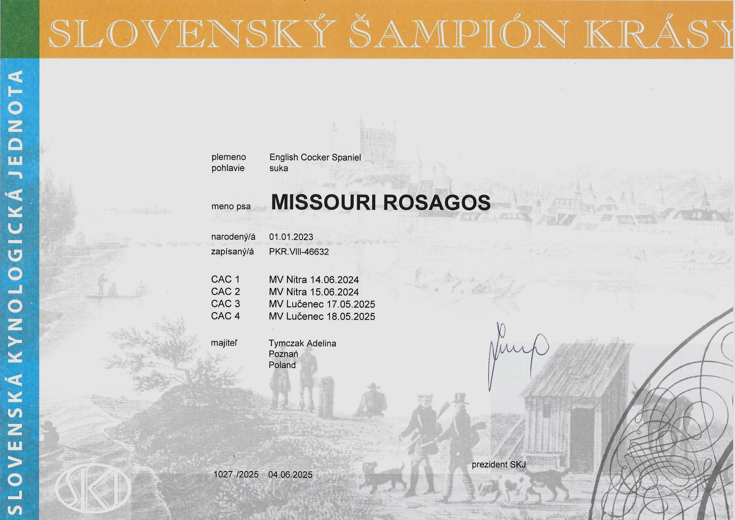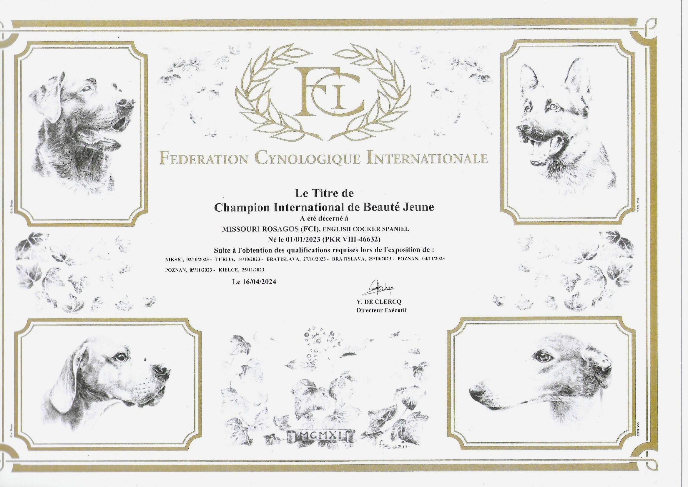 23x CACIB (Austia,Belgium,Croatia,Czech Republic,Germany,Lithuania,Luxembourg,Poland,Romania,Serbia,Slovenia,Slovakia,Hungary)