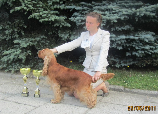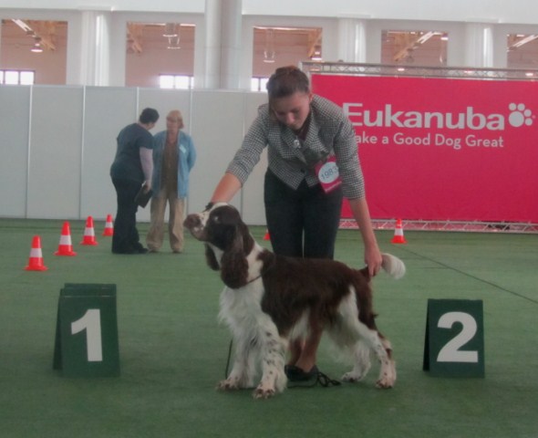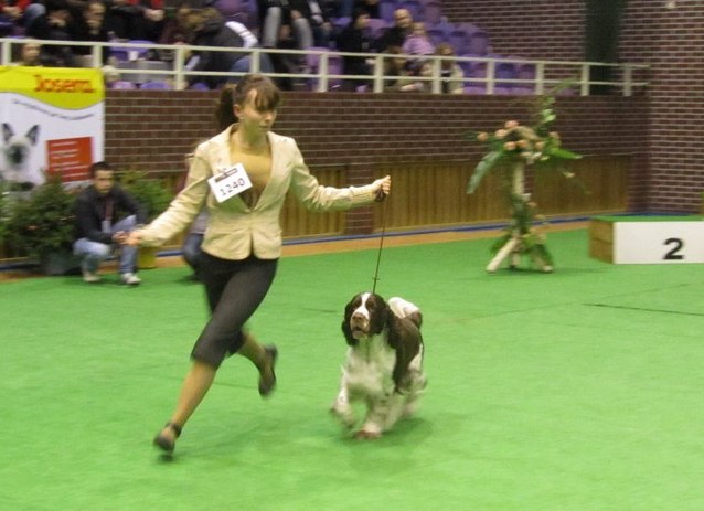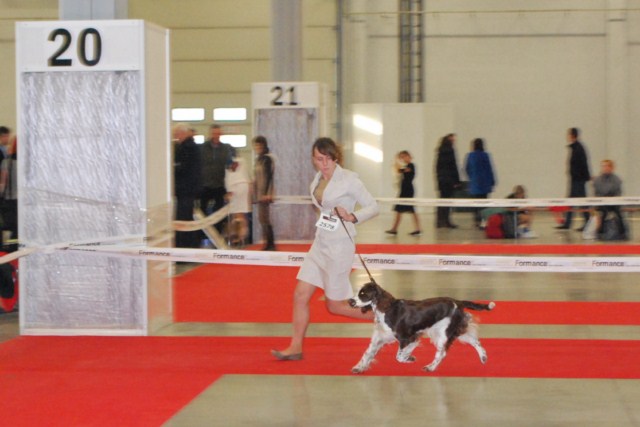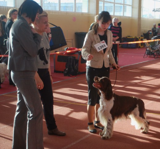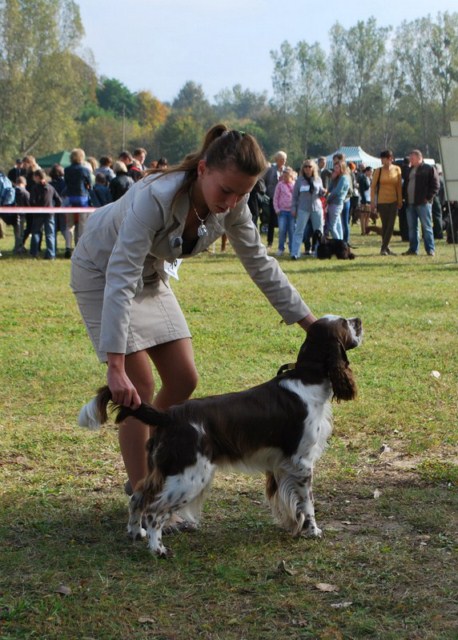 Wystawiany przez Gosię, springer spaniel angielski THE ONLY FRIEND Three Ponds Valley (wł.p. Zenobia Weiss),otrzymał lokatę I, CWC-sędzia Zofia Konderla.