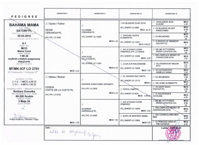 BAHAMA MAMA Satori*Pl hodowla Satori 09-02-2010Maine Coon f 09 22 Rodowód >>>Kotka nie jest przeznaczona do hodowli!