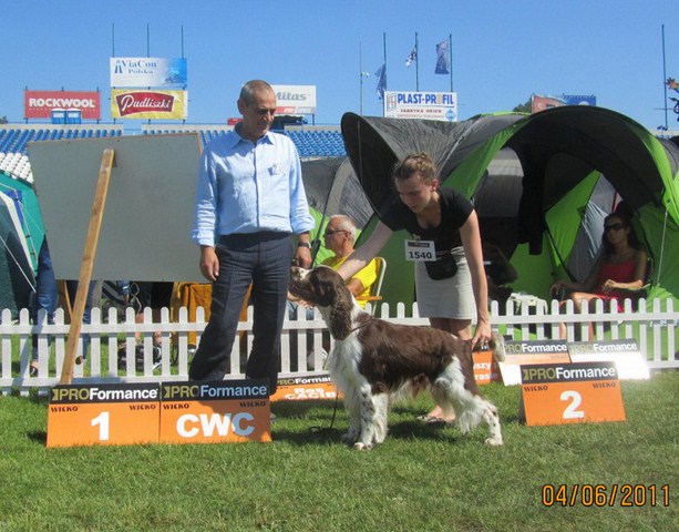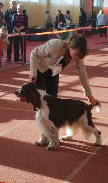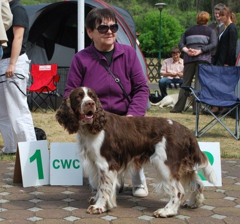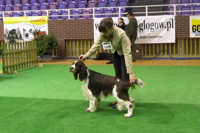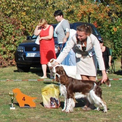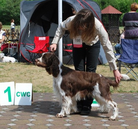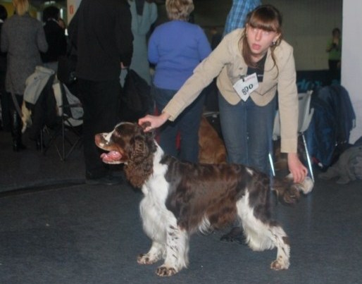 Wystawiany przez Gosię, springer spaniel angielski THE ONLY FRIEND Three Ponds Valley (wł.p. Zenobia Weiss),otrzymał lokatę I, CWC-sędzia Zofia Konderla.
